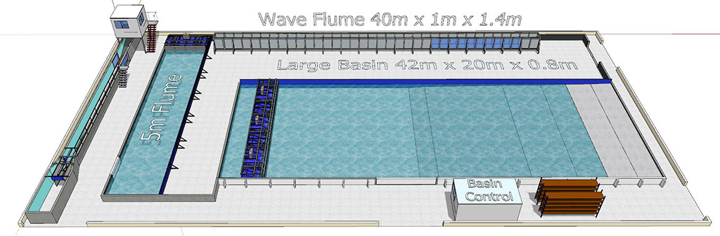 - State-of-the-art flume and basin wave generation systems with up to 20-metre basin paddle widths