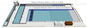 - 1-metre wide flume – 40m x 1m x 1.4m deep wave flume