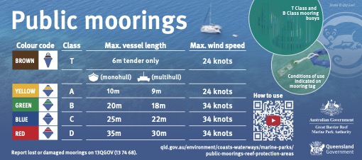 If you’d like to know more about the system of public moorings and reef protection markers in place along the Great Barrier Reef, look out for these free brochures and check out the website.