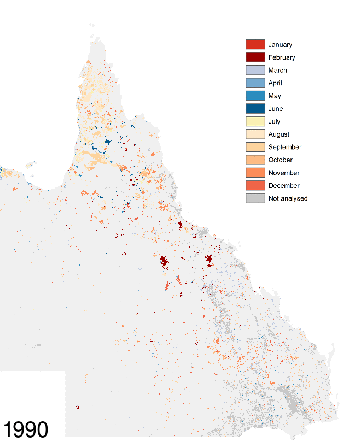 Statewide fire scar mapping is available from the Queensland Spatial Catalogue - QSpatial (using the search term ‘fire scars’) and from the TERN Data Discovery Portal (2017 onwards and 1986–2016). Data types are: