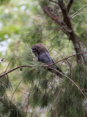 The glossy black-cockatoo is listed as Vulnerable under the Queensland Nature Conservation Act 1992 and Endangered under the Commonwealth Environment Protection and Biodiversity Conservation Act 1999. Glossy black-cockatoos feed exclusively on the seed cones of she-oaks (Allocasuarina species) and nest in eucalypt tree hollows, making them very susceptible to the impacts of the 2019 fires, as well as the preceding drought. Habitat degradation and the loss of mature she-oaks and eucalypts trees through land clearing or disease are additional threats to glossy black-cockatoo populations.