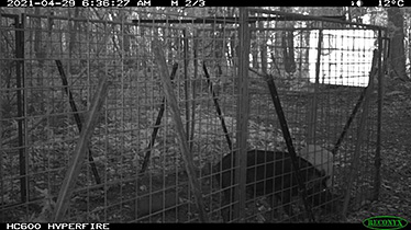 In the Burnett Creek section of Mt Barney National Park, a post-fire increase in pig activity was addressed to protect the recovery of priority threatened frog species in this creek system. New pig traps with remote satellite monitoring devices were deployed, with six pigs trapped and trapping efforts ongoing.