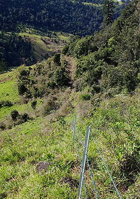 In Lamington National Park, a 1.3 km section of fencing that was damaged in the 2019 bushfires was replaced to exclude catttle from the fire-impacted lowland sub-tropical rainforests. It required working in steep and difficult terrain and carrying materials in by hand. The results complemented other concurrent fencing efforts to double the length of exclusion fence in the Illinbah section of the park.