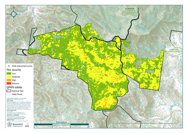In late 2019, a bushfire burnt 1,438 hectares of Oakview National Park. A more detailed assessment of the ecological impacts of the fires was undertaken which is initiated by detailed fire severity mapping.