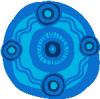 In the artwork that Elaine created for our strategy, she has mixed the old with the new to create a contemporary design. The main symbol shows children together as they are the main focus for Blue Card Services. The children are protected by waves of emotion connecting them to mob, family and culture.